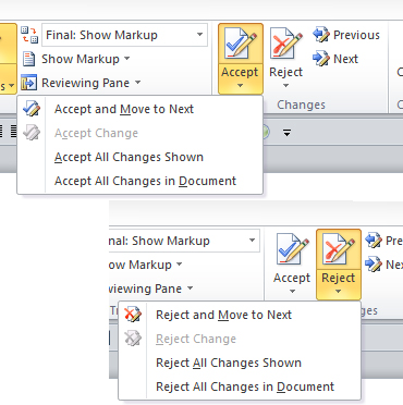 - Accept or Reject more than one change at a time. Sometimes, you’ll